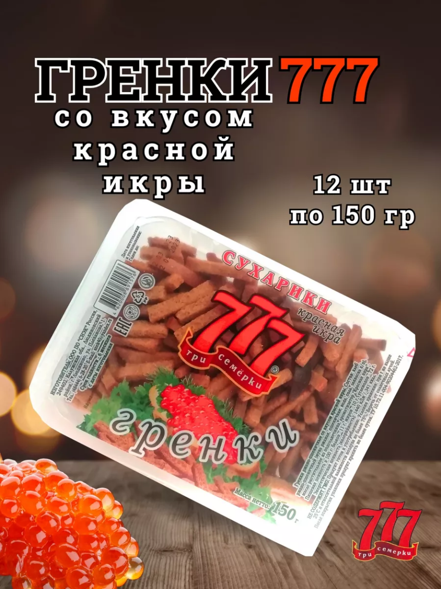 Сухарики гренки 777 со вкусом красной икры (контейнер), 5 шт по 150 гр