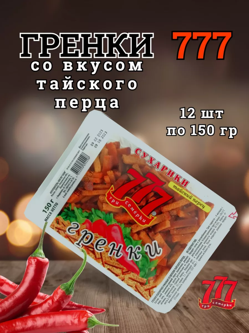 Купить Сухарики Гренки 777 со вкусом тайского перца (контейнер), 12 шт по 150 гр