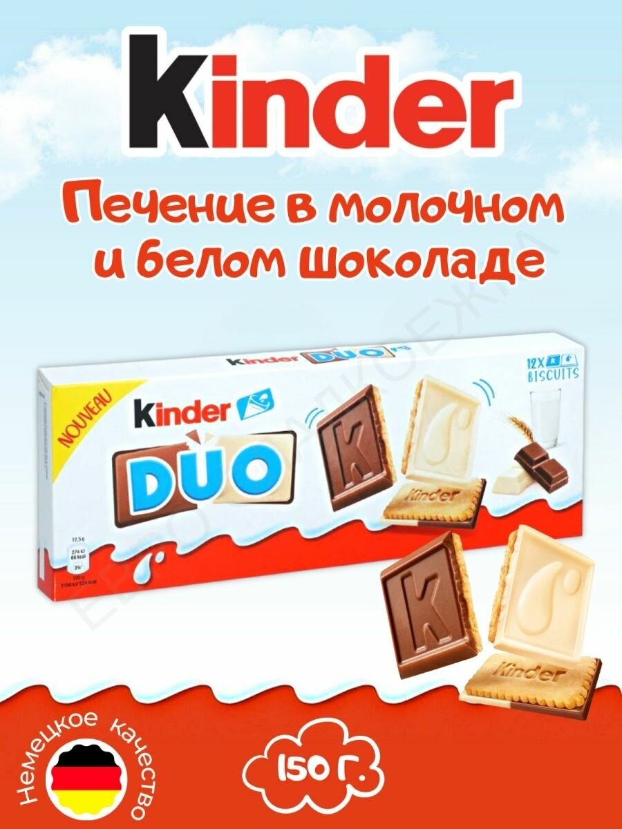 Печенье Kinder Duo с белым и молочным шоколадом, 2 шт. по 150 гр. (Италия)