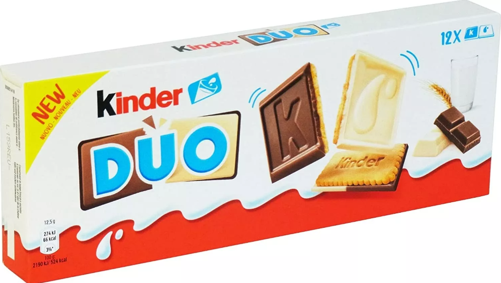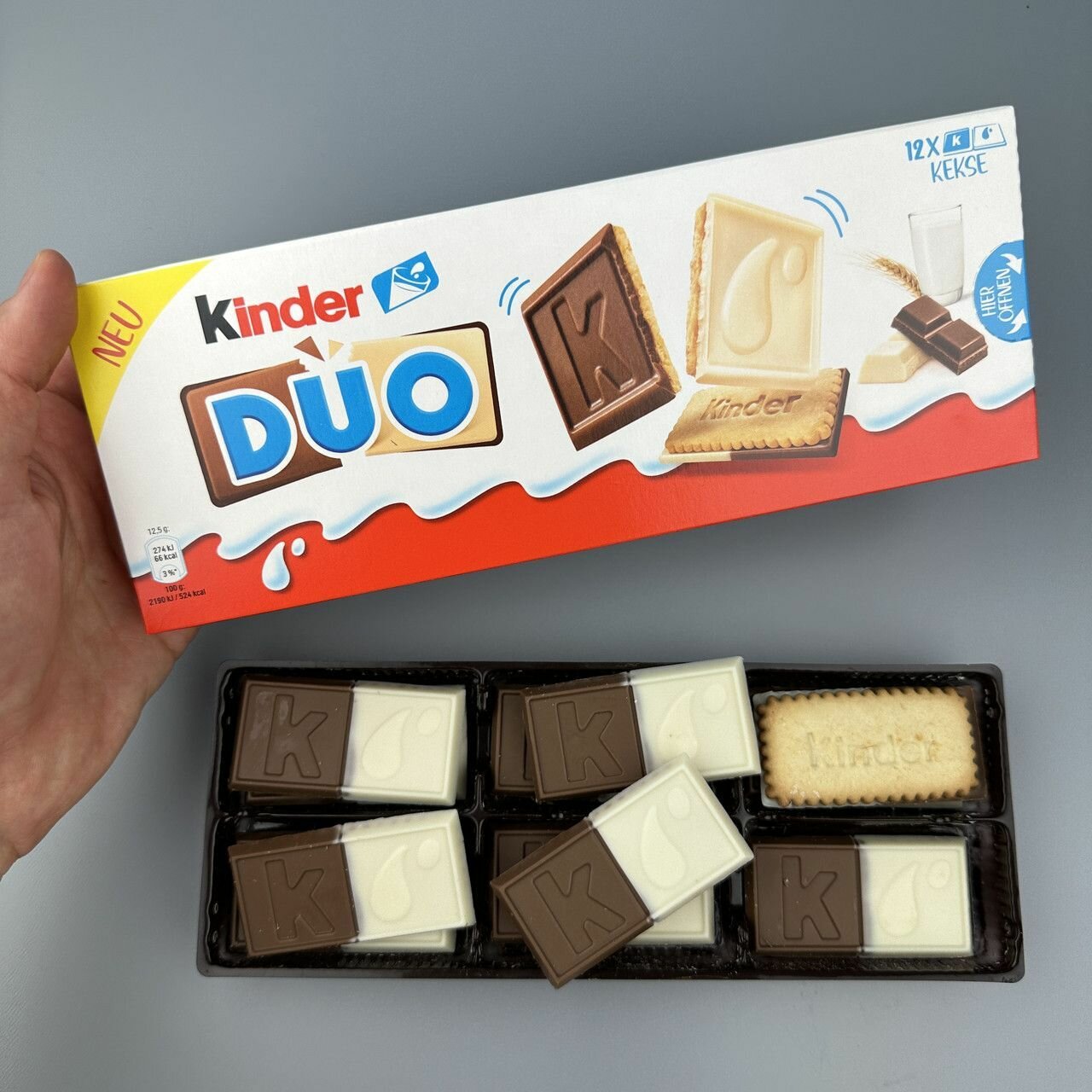 Купить "Киндер дуо" - бисквитное печенье с начинкой из молочного и белого шоколад