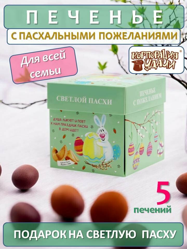 Печенье с пасхальными пожеланиями "Пасхальный кулич" 5 штук. Подарок на Пасху Корпорация удачи