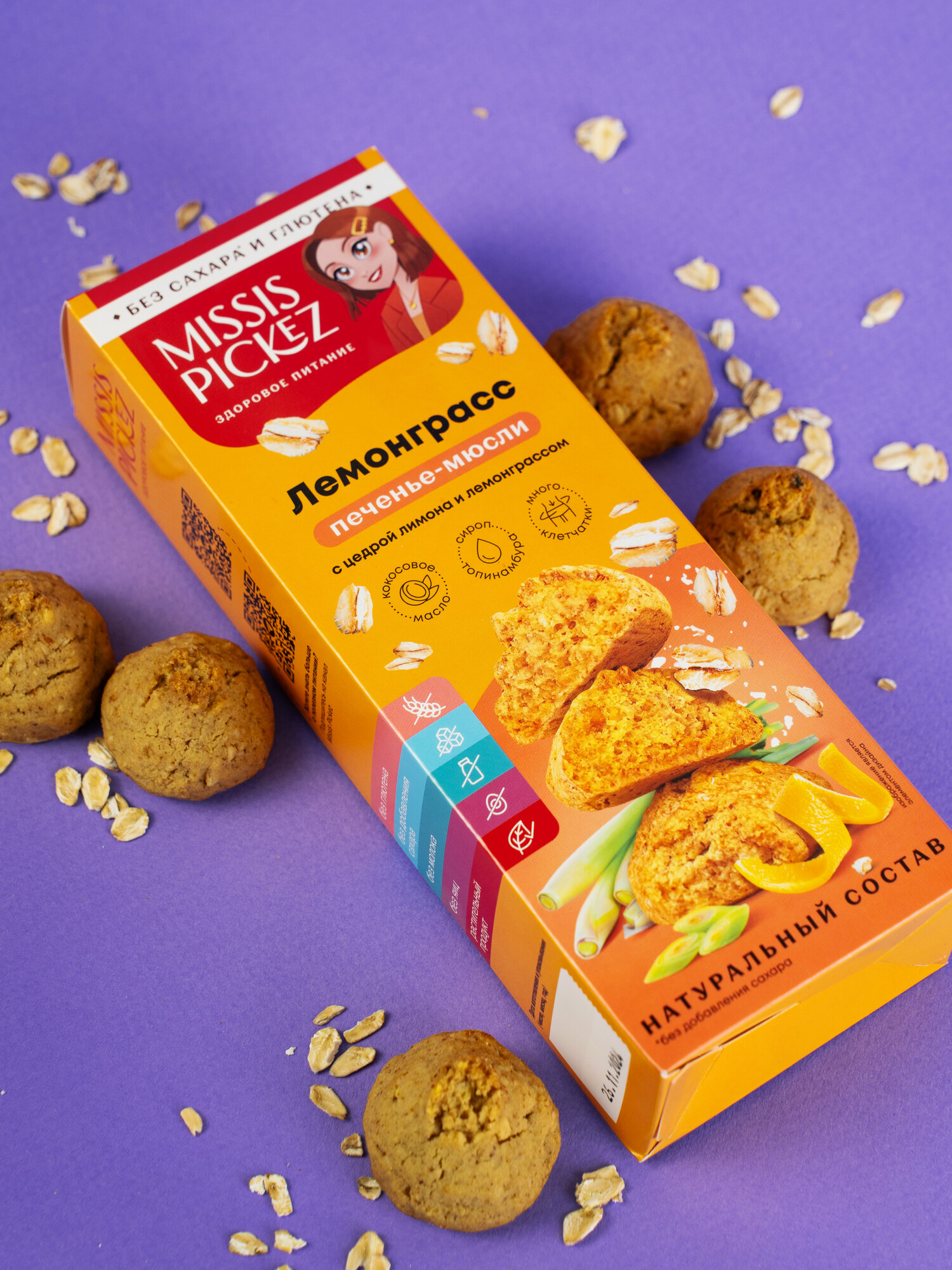 Набор печенья без глютена и лактозы "Missis Pickez" Печенье мюсли ореховое, взорванная кукуруза, взорванная гречка, семена льна 4 пачки по 100 г