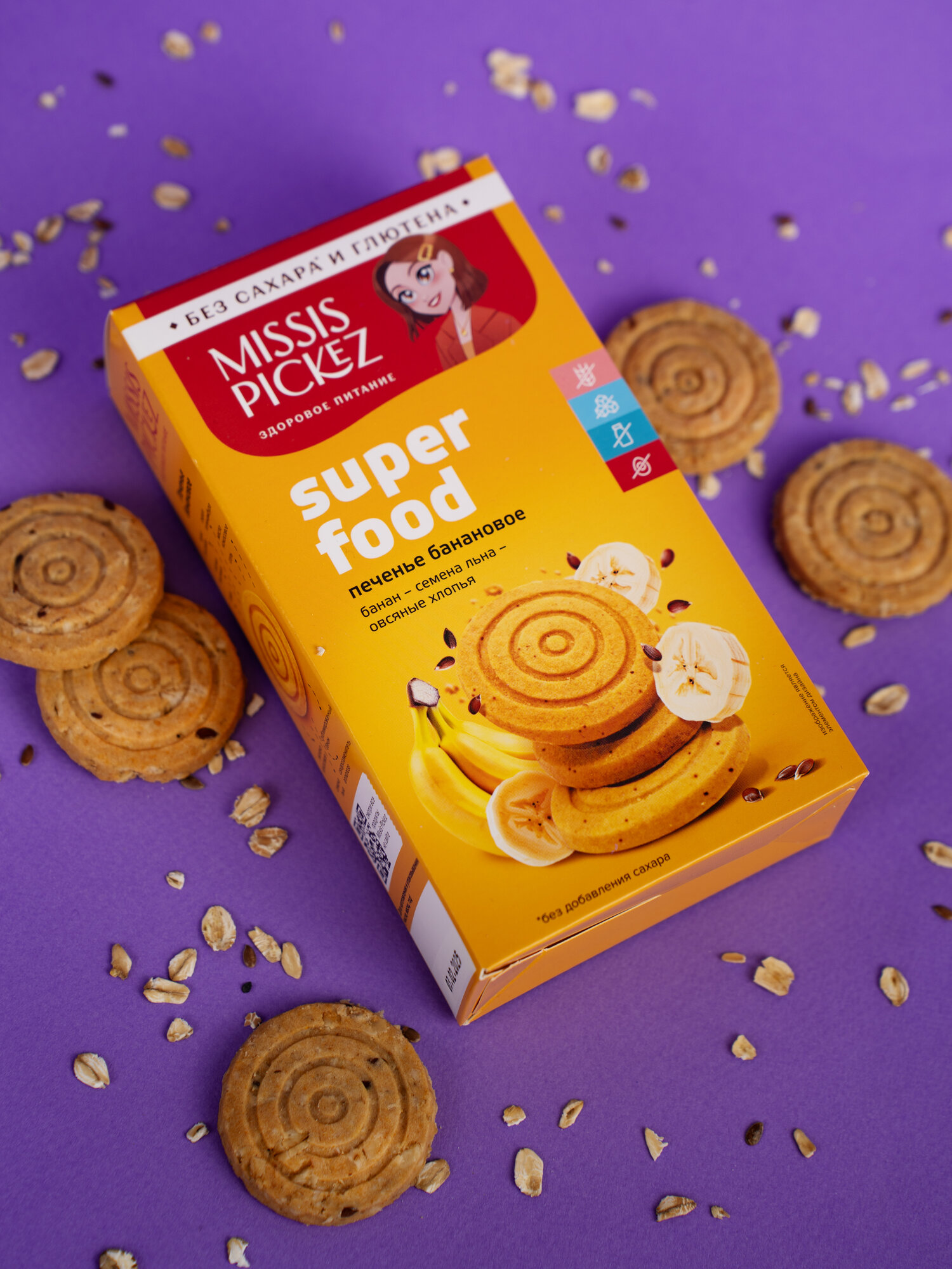 Купить Missis Pickez Печенье Пряная вишня, Штрудель, Апельсиновое, Банановое Без лактозы глютена и сахара Набор - 4 пачки