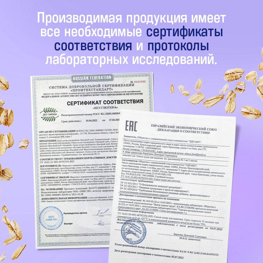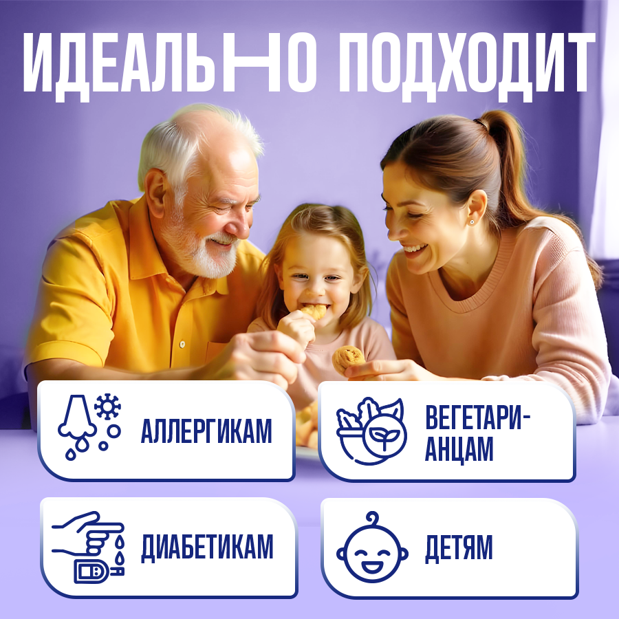 | Не содержит | ГМО / глютен / консерванты / красители / лактозу / пальмовое масло / сахар / яйца |