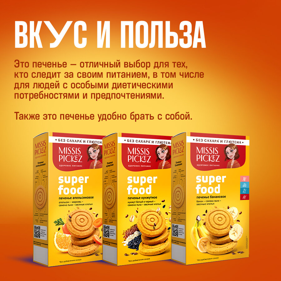 Купить Missis Pickez Печенье Апельсиновое без сахара и глютена, без лактозы Натуральное для детского питания Набор - 3 упаковки