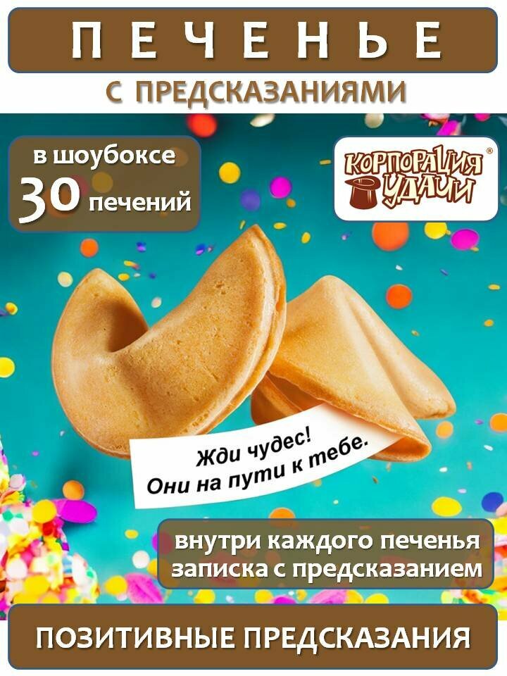 Печенье с предсказаниями "Волшебное послание" шоубокс для кофейни 30 штук. Подарок. Корпорация удачи