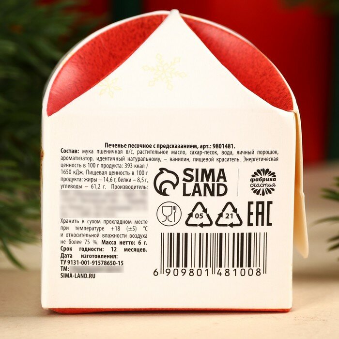 Фабрика счастья Печенье с предсказанием «Дед Мороз тебя любит», 1 шт x 6 г.