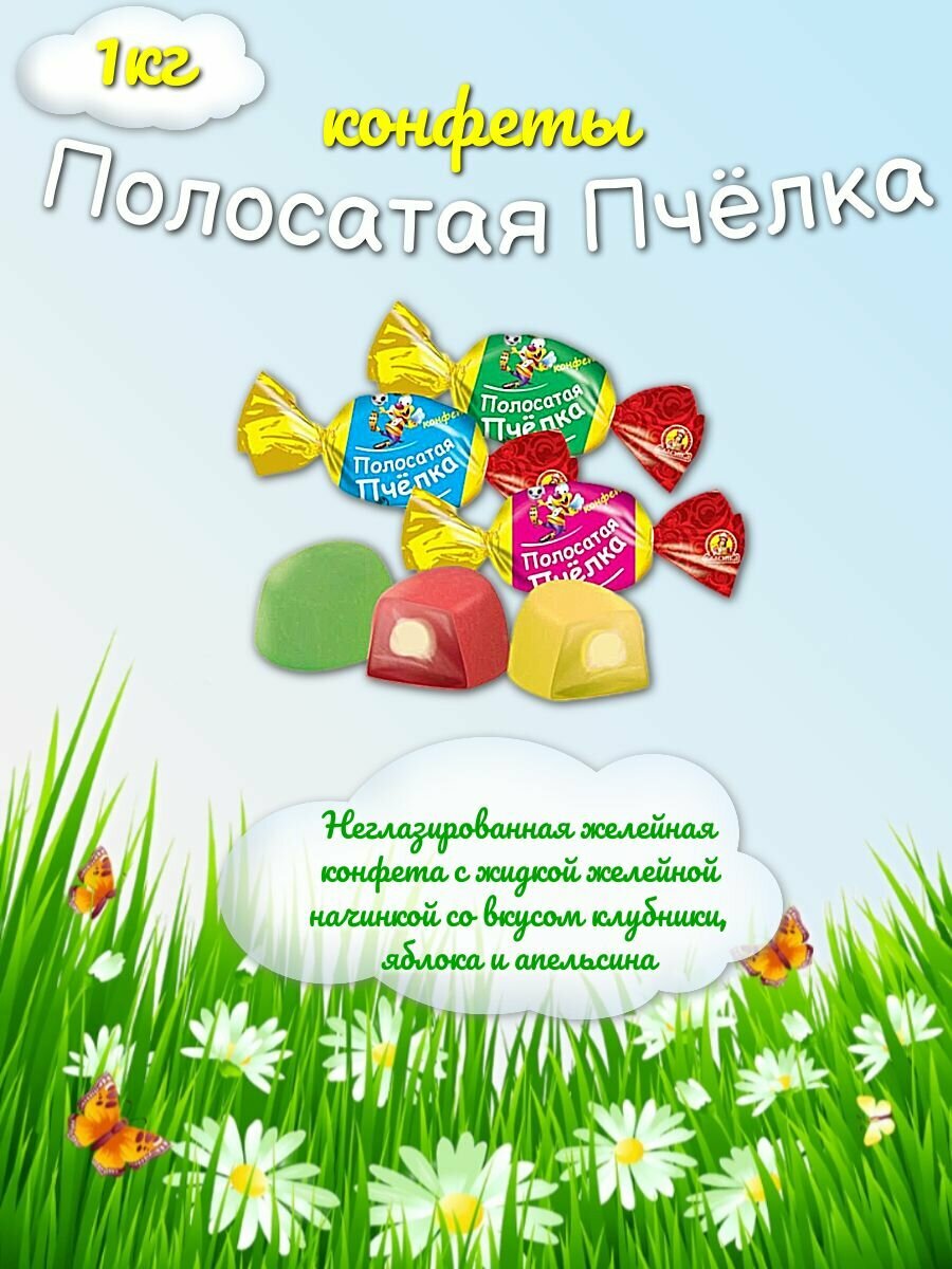 Купить Конфеты Полосатая Пчелка Славянка желейные со вкусом клубники, яблока, апельсина 1 кг