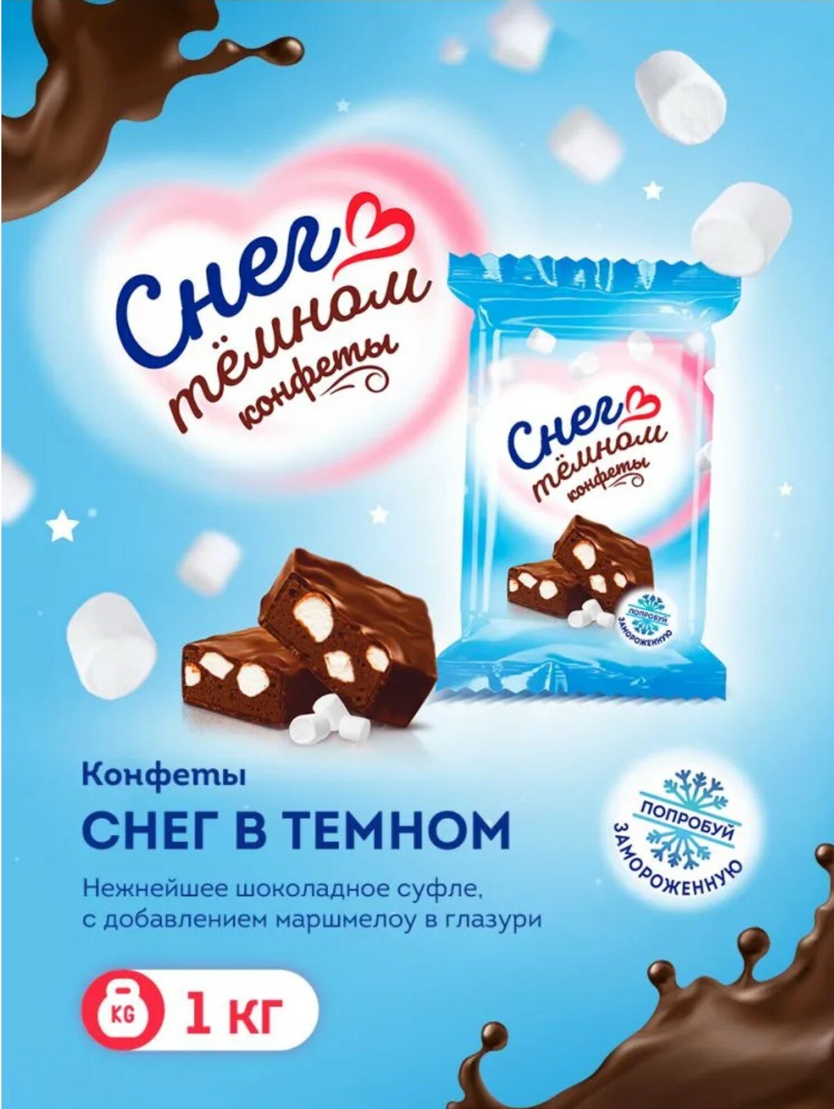 Купить Конфеты Сладуница «Снег в темном», темный шоколад с маршмеллоу