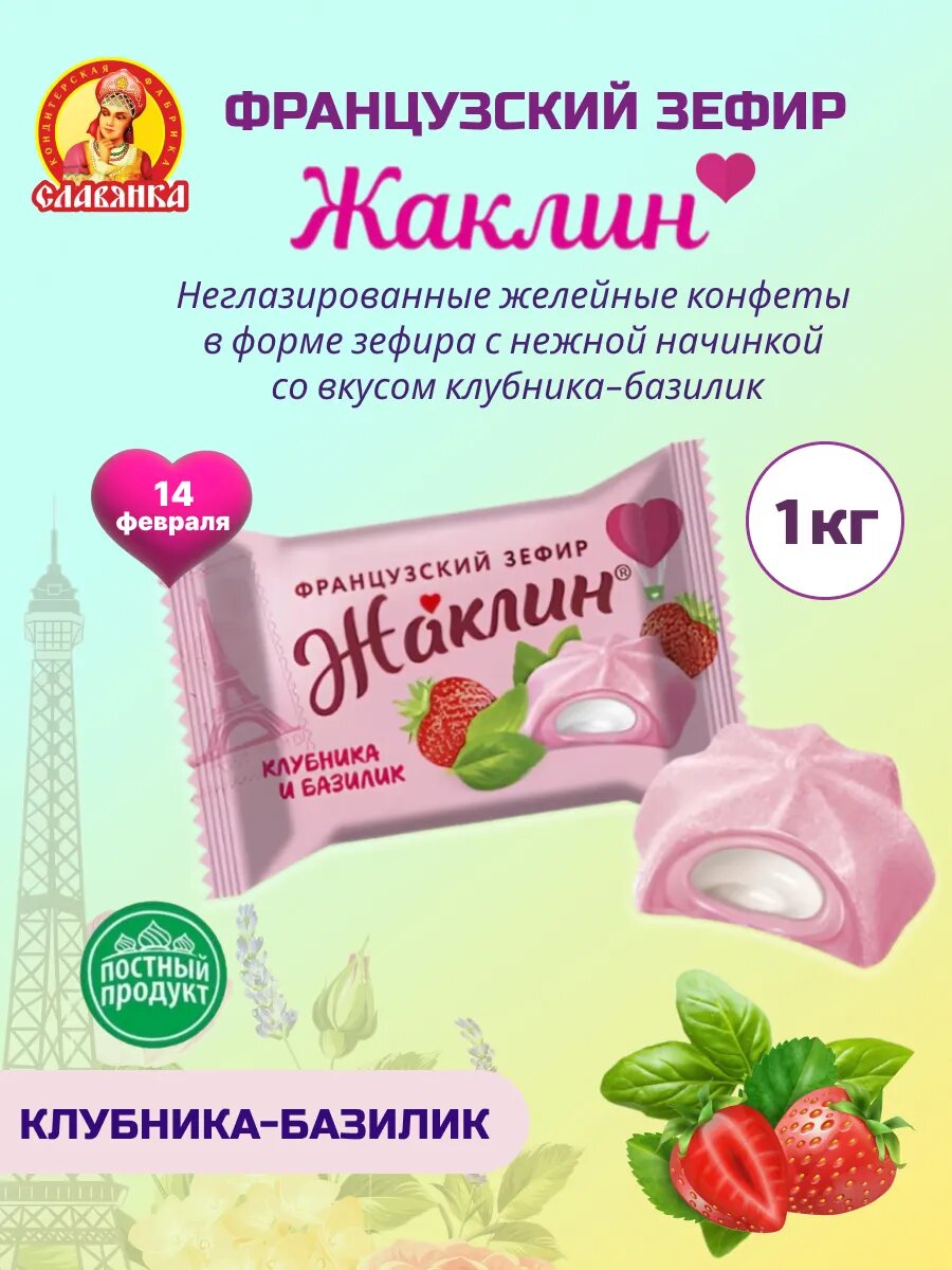Конфеты Славянка "Жаклин", французский зефир, клубника-базилик, 1 кг интересное: