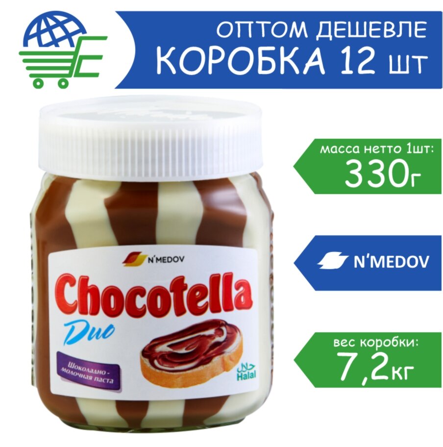Паста шоколадно-молочная 330г х 12шт Chocotella DUO, N'Medov (Узбекистан) интересное: