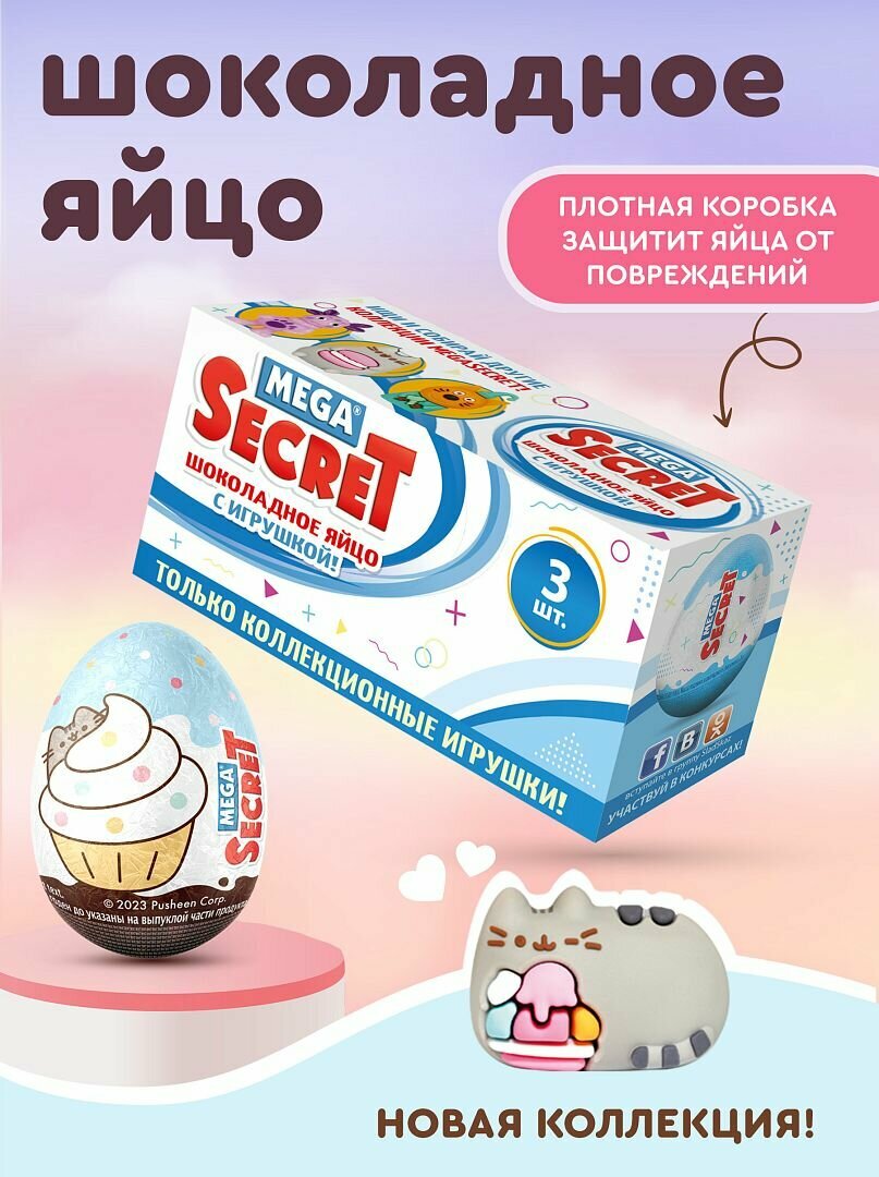 Шоколадное яйцо с игрушкой Mega Secret "Pusheen", Пушин 3 штуки в упаковке интересное: