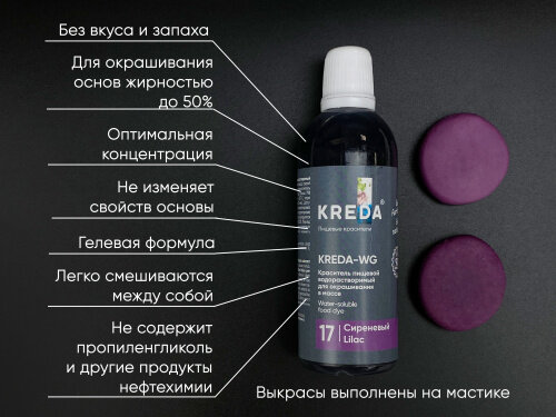 Ниже Вы можете прочитать отзывы на Краситель гелевый Kreda-WG 17 Сиреневый, водораствор, 100г, ознакомится с подробными характеристиками, посмотреть интересные обзоры и фотографии на Краситель гелевый Kreda-WG 17 Сиреневый, водораствор, 100г.