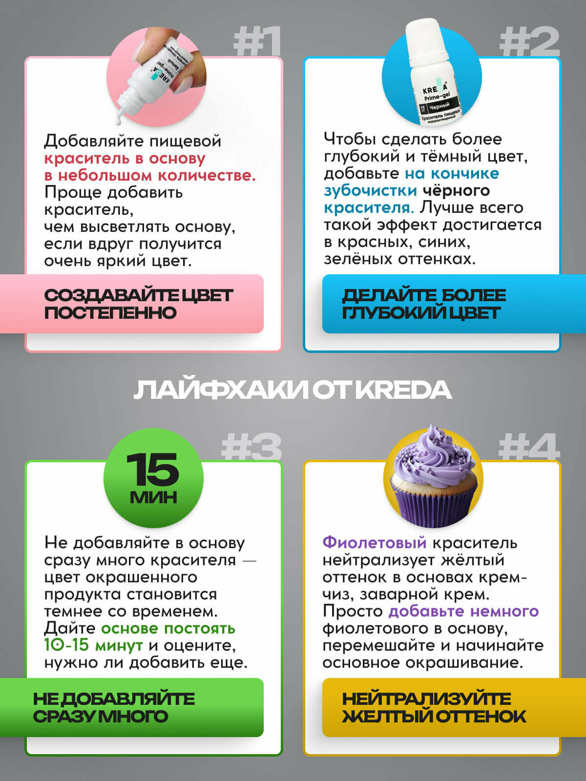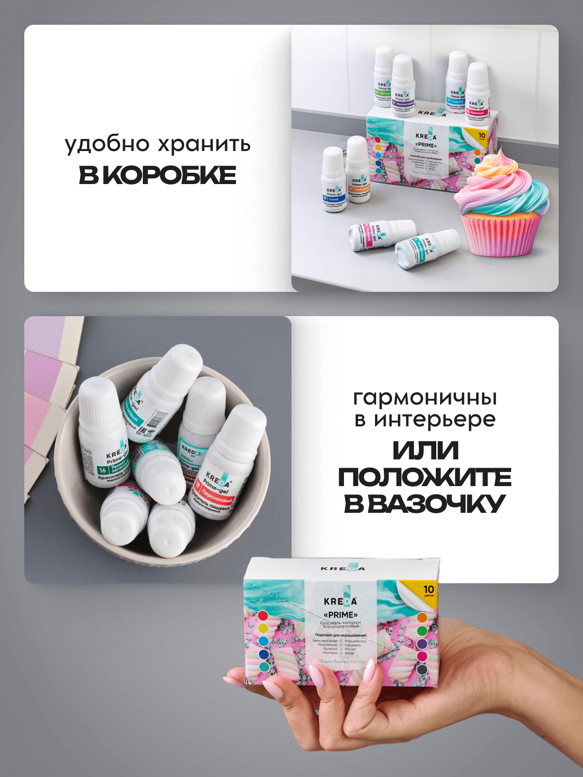 Набор пищевых красителей Kreda Prime, гелевые, 4x10 мл интересное: