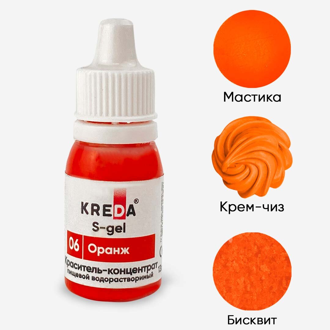 Краситель пищевой концентрат гелевый Kreda S-gel оранж №06, 10 мл