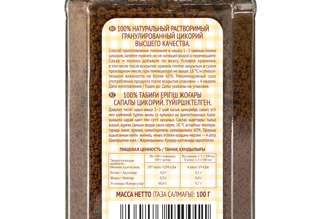 | Состав | 100% натуральный растворимый цикорий |