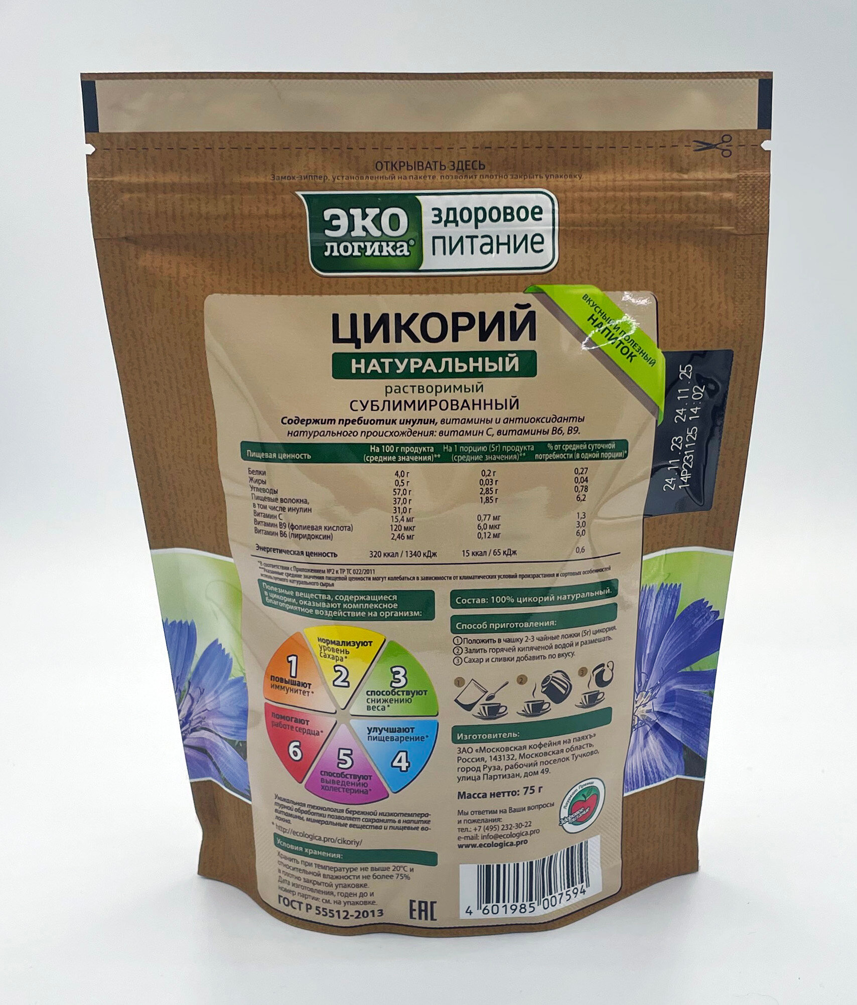 Купить Цикорий Экологика м/у 75г натуральный сублимированный