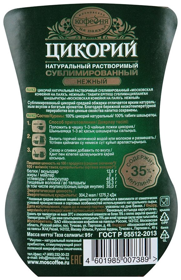 Цикорий Московская кофейня на паяхъ Нежный растворимый натуральный, стеклянная банка, 95 г интересное: