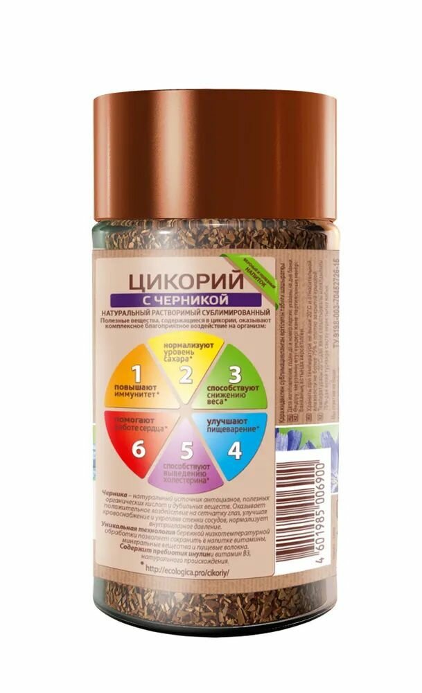 СохранитьЦикорий растворимый, Экологика Здоровое питание, 100% натуральный сублимированный с черникой, 85 гр. интересное: