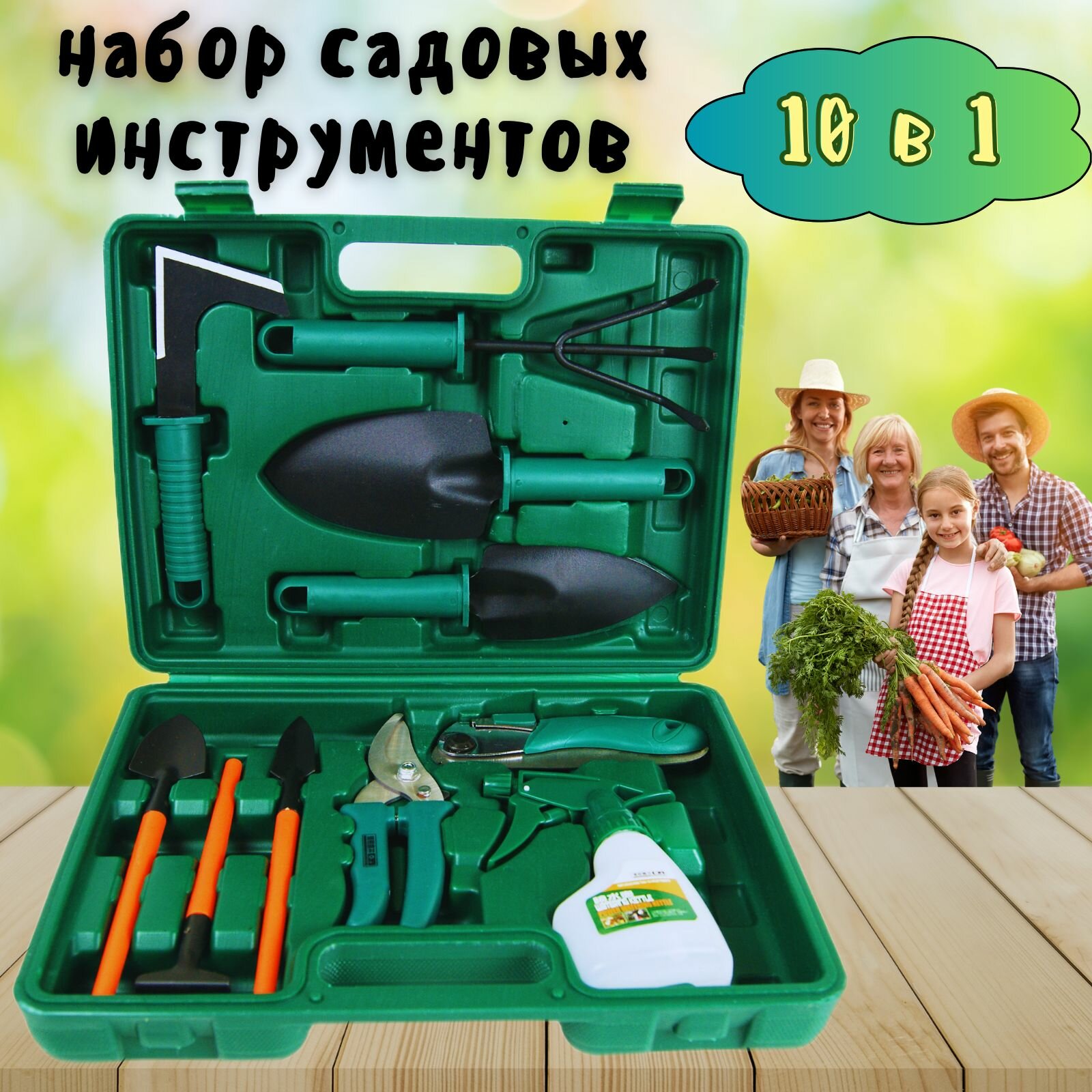 Набор садовых инструментов Union PGH-10, металл/пластик, 10 предметов, в кейсе, цвет светло-зелёный интересное: