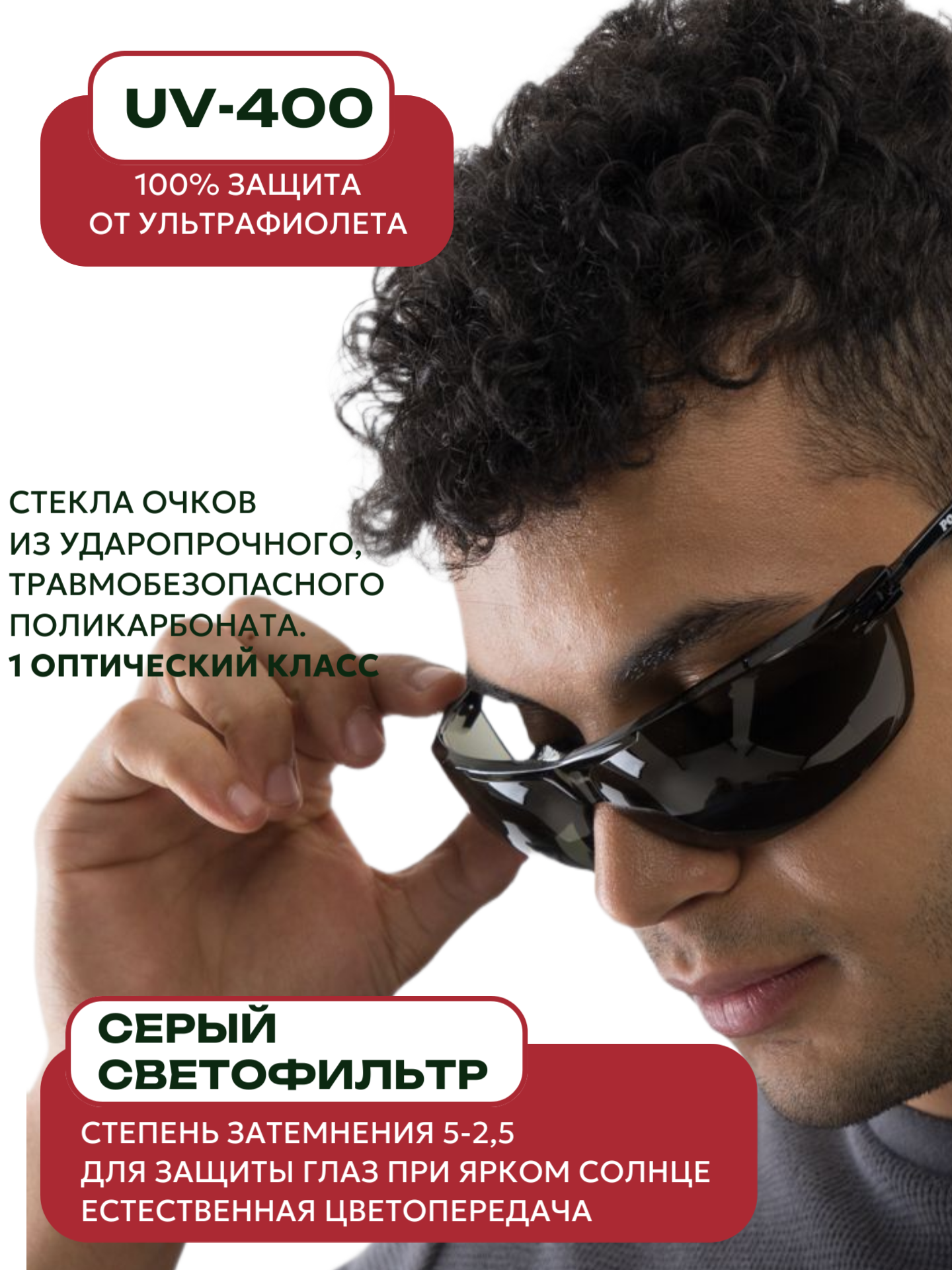 Очки защитные РОСОМЗ О88 Сургут темно-серые, очки солнцезащитные, ударопрочные