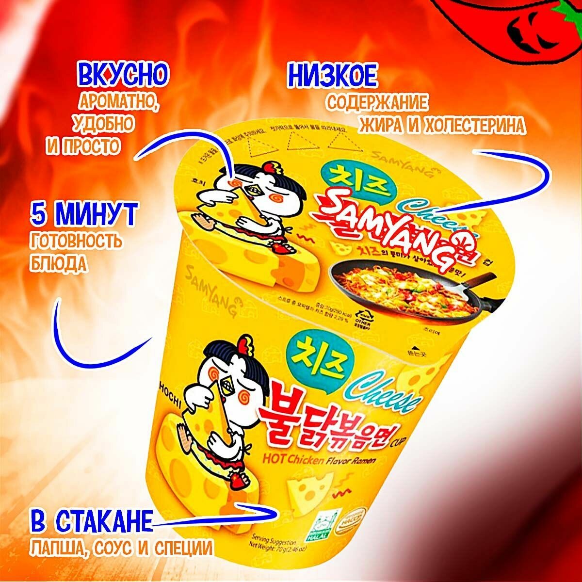 СохранитьSamyang лапша быстрого приготовления рамэн со вкусом острой курицы бульдак с сыром 70 гр интересное: