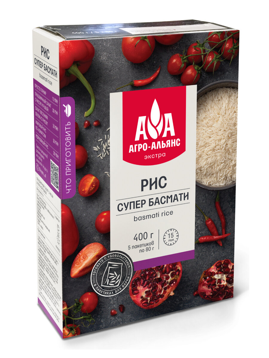 Купить Рис Супер Басмати Агро-Альянс Экстра в пакетиках для варки 400г (5*80г)