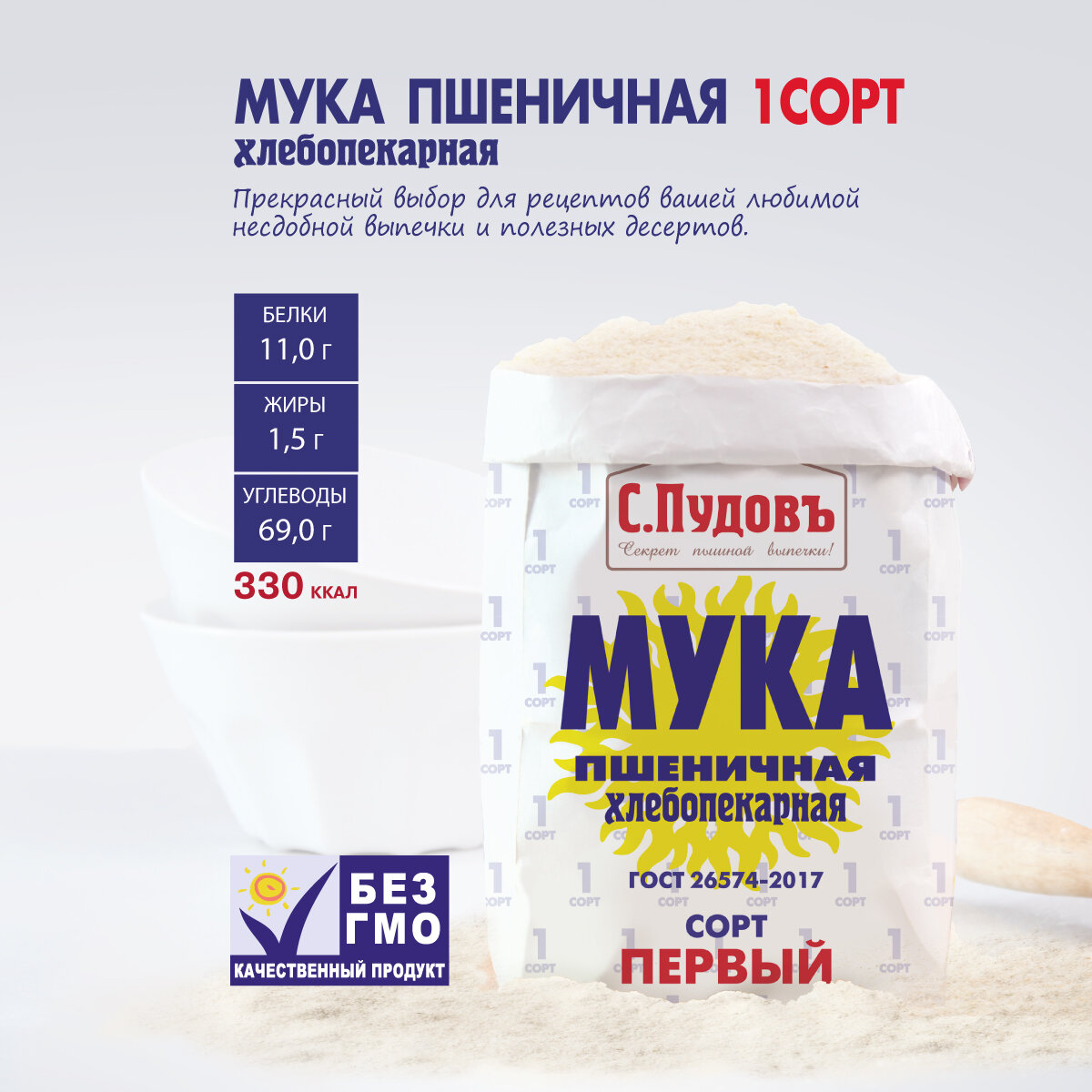 Мука пшеничная 1 сорт С. Пудовъ, 1 кг интересное: