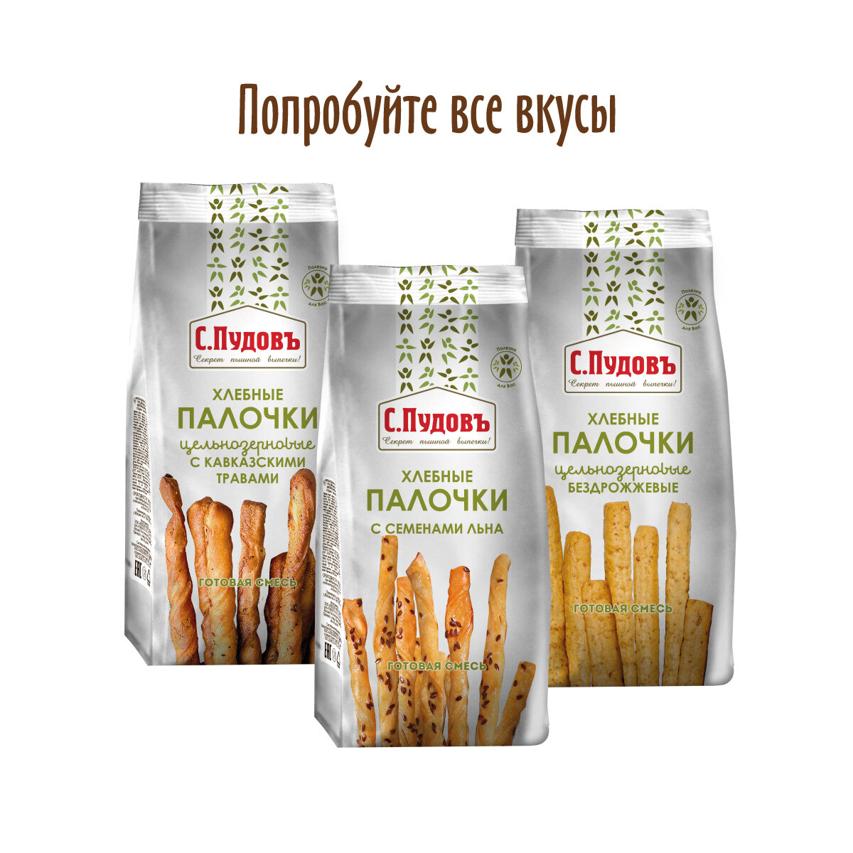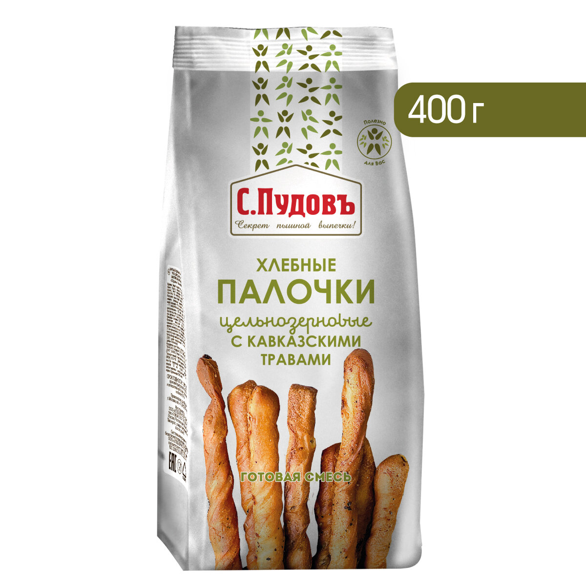 Смесь для выпечки "Хлебные палочки из цельнозерновой муки с кавказскими травами" С. Пудовъ, 400 грамм. интересное: