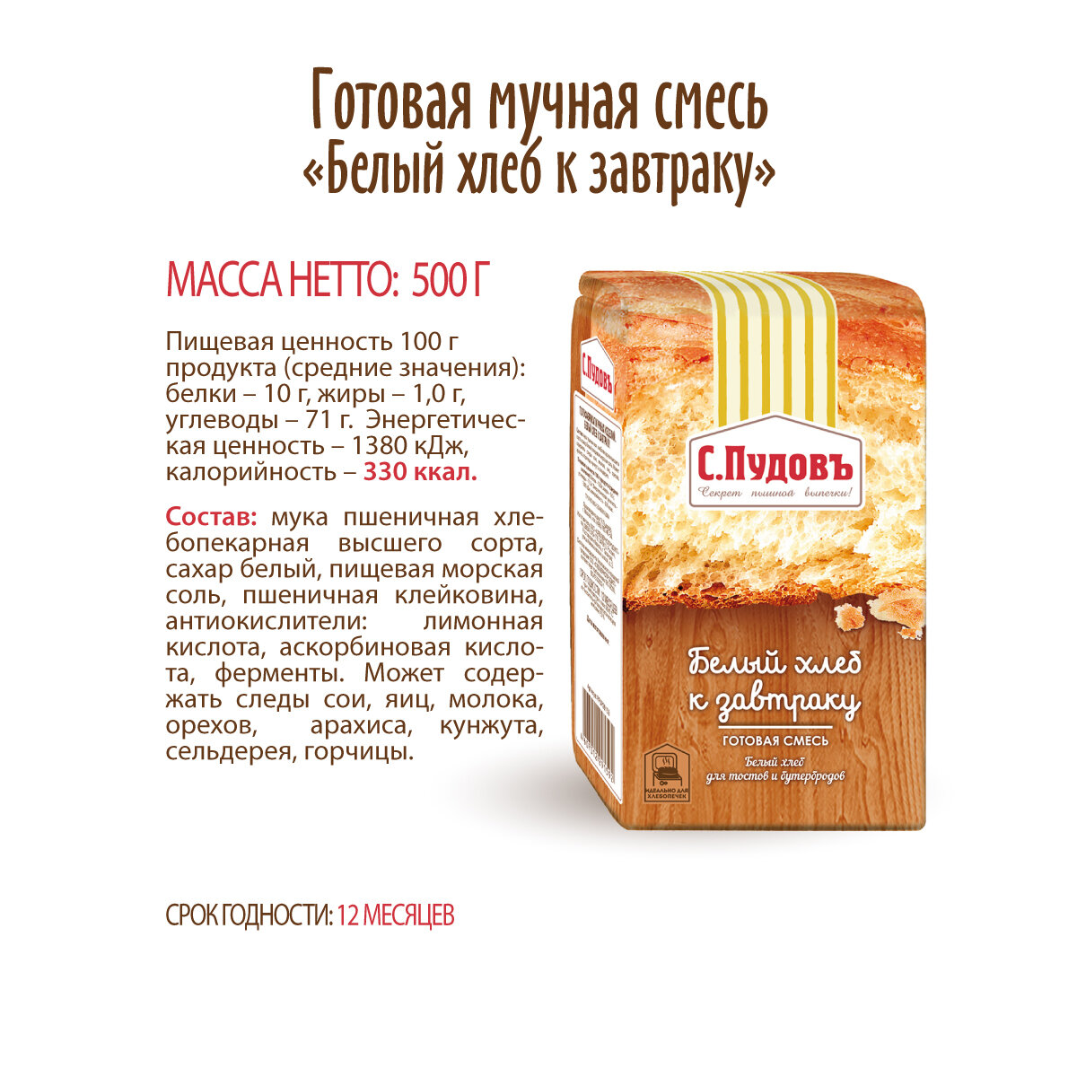 Смесь для выпечки хлеба "Белый хлеб к завтраку" С. Пудовъ, 500 г интересное: