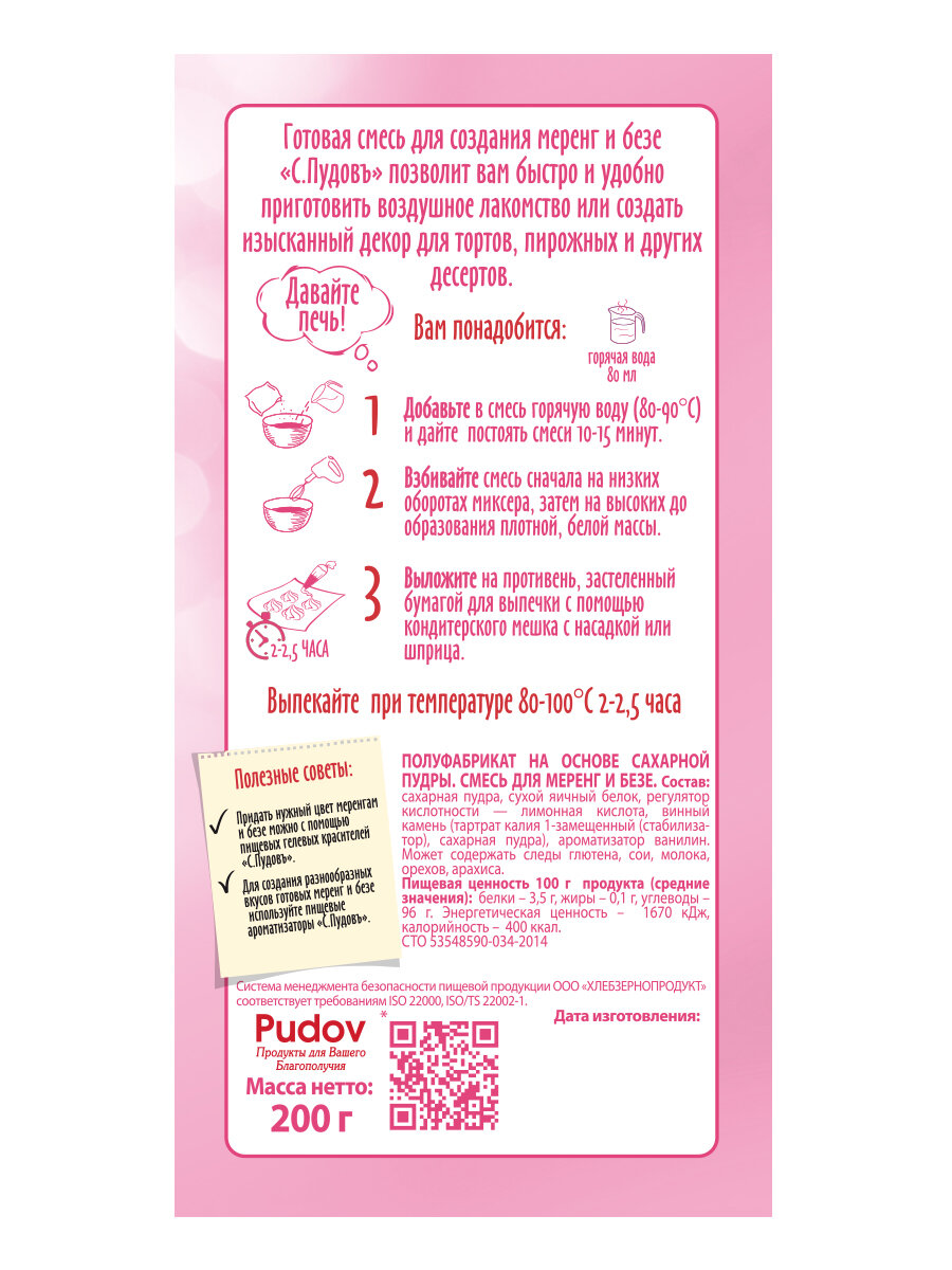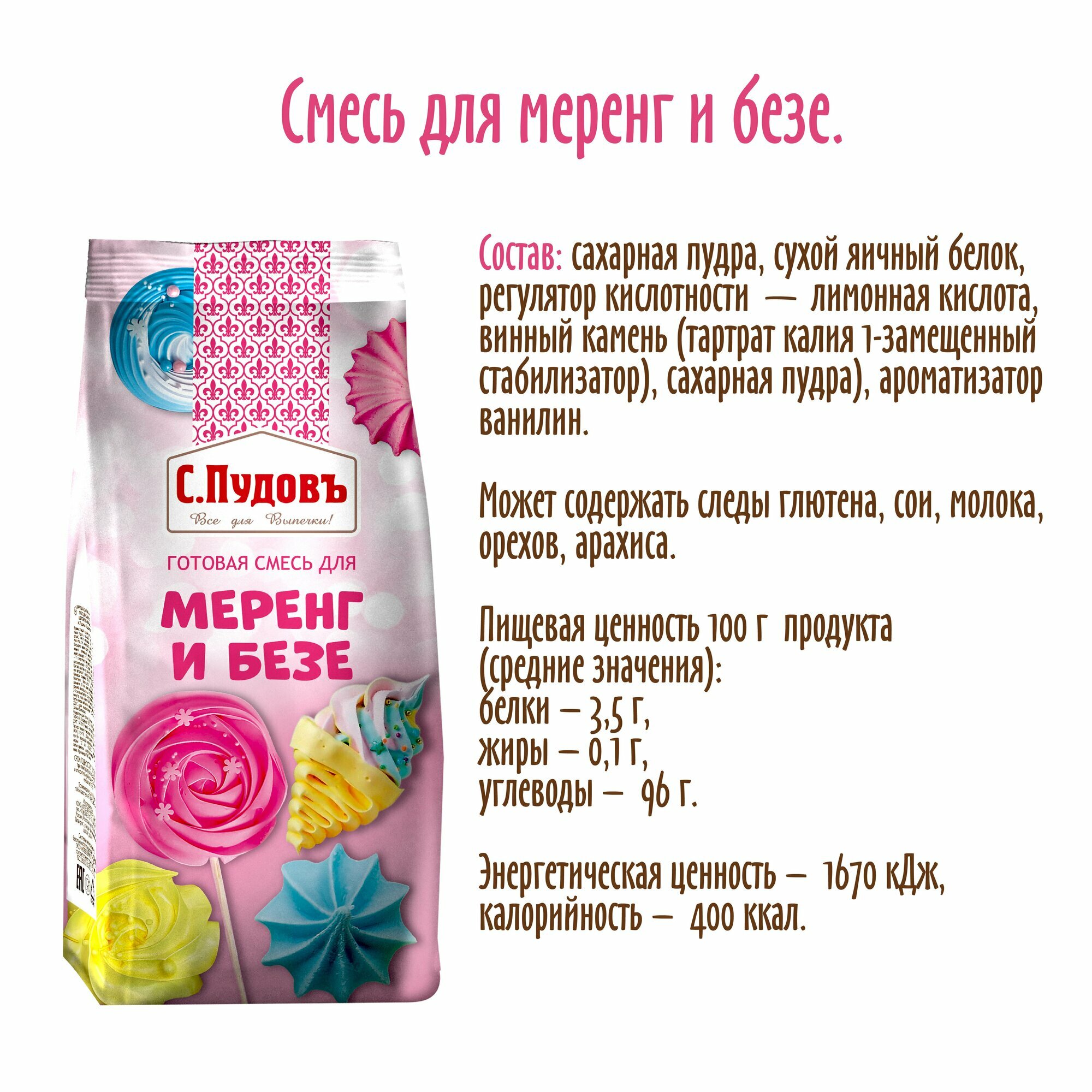 Готовая смесь для приготовления меренг и безе, С. Пудовъ, 200 г. интересное: