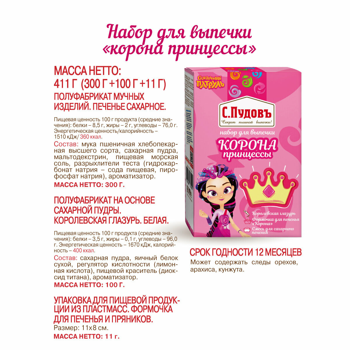 Купить Набор для выпечки печенья "Корона принцессы" Сказочный патруль С. Пудовъ, 0,411 кг (смесь, формочка, глазурь)
