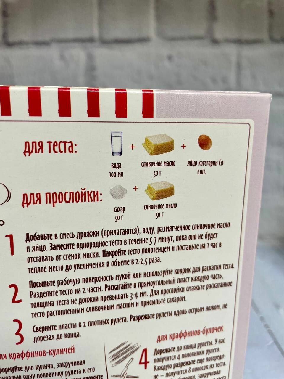 | Состав | Мука пшеничная хлебопекарная высшего сорта, сахар белый, молоко сухое цельное, дрожжи хлебопекарные сухие (в отдельном пакетике), пищевая морская соль, ароматизатор ванилин. Может содержать следы глютена, сои, яиц, орехов, арахиса, кунжута, сельдерея, горчицы. |