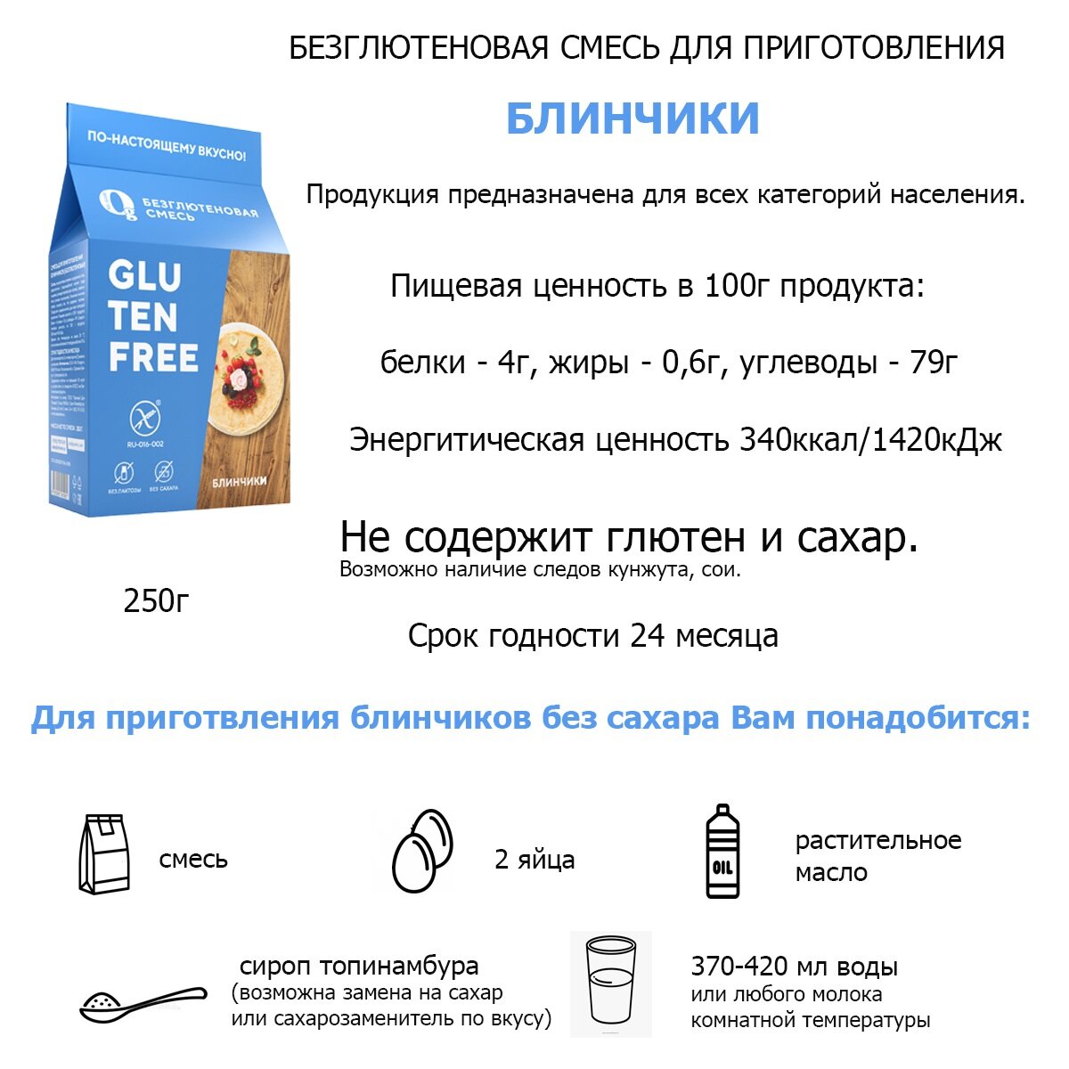 Смеси для выпечки без глютена без сахара Блинчики Ноль Грамм 250 г интересное: