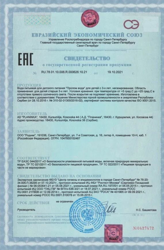 | Дополнительная информация | вода высокой щелочности (Ph – 8,5-8,8) при низкой минерализации; содержит метакремниевую кислоту Н2SiO3 (83,4 мг/л) |