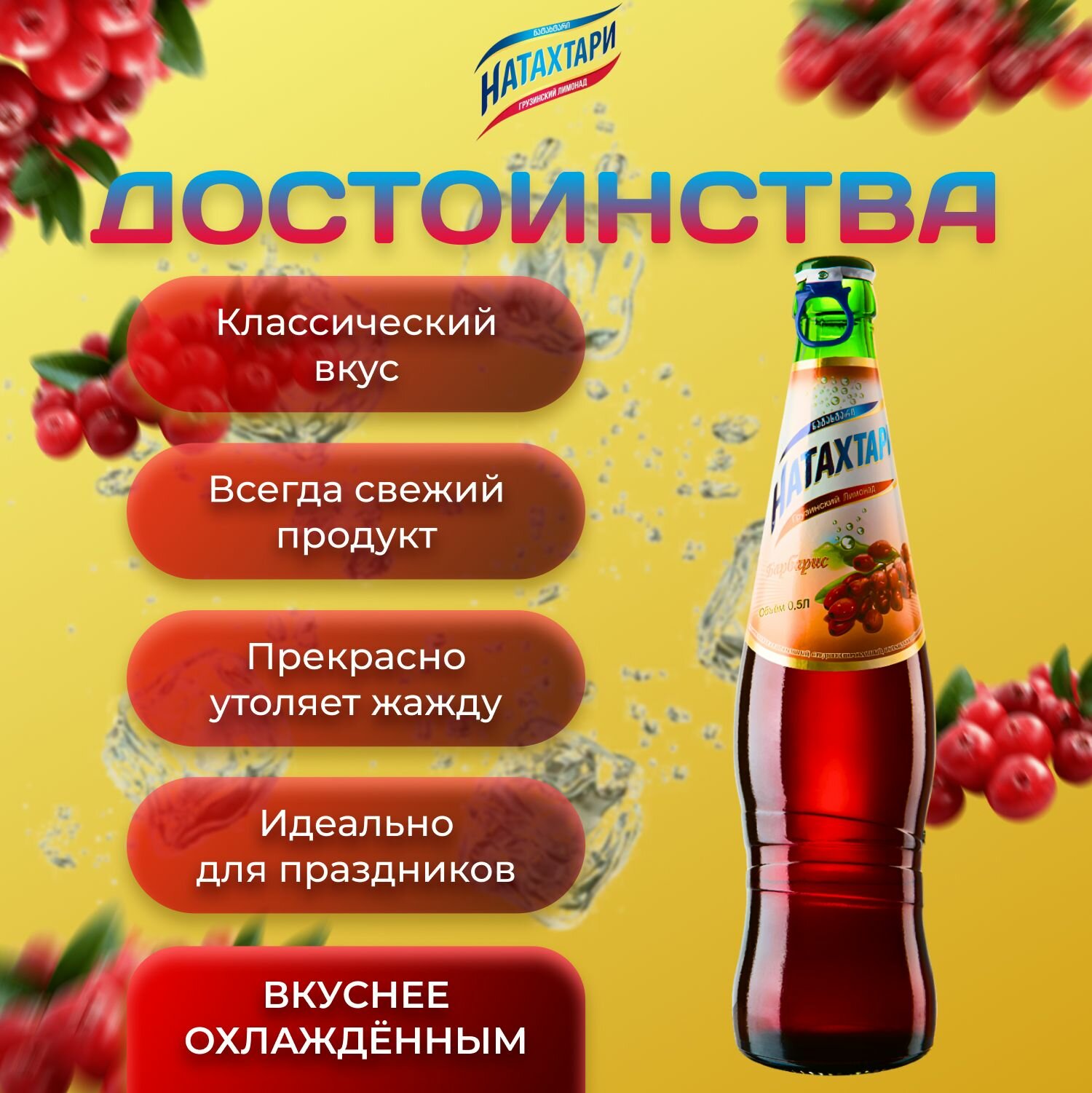 СохранитьЛимонад Натахтари со вкусом "Барбарис" 20 шт по 0,5 л Грузия интересное: