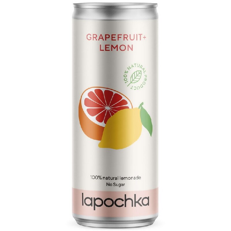 Натуральный лимонад без сахара LAPOCHKA Грейпфрут + Лимон 20 х 0,33 л