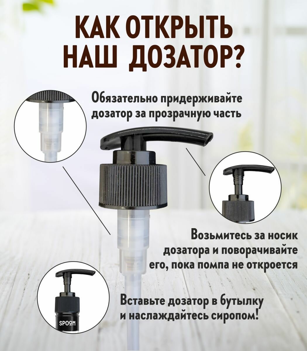 Набор сиропов Spoom №15 для кофе Соленая карамель, Амаретто, Шоколад в фирменной упаковке (3 шт по 330 г / 250 мл) + 3 дозатора в подарок