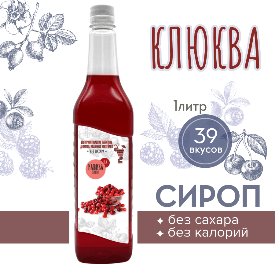 Сироп Без сахара Низкокалорийный Черное Море 1 литр Клюква