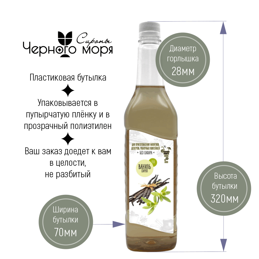 Сироп Без сахара Низкокалорийный Черное Море 1 литр Ваниль