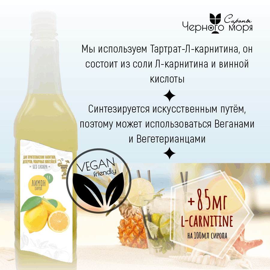 Сироп Без сахара Низкокалорийный Черное Море 1 литр Лимон