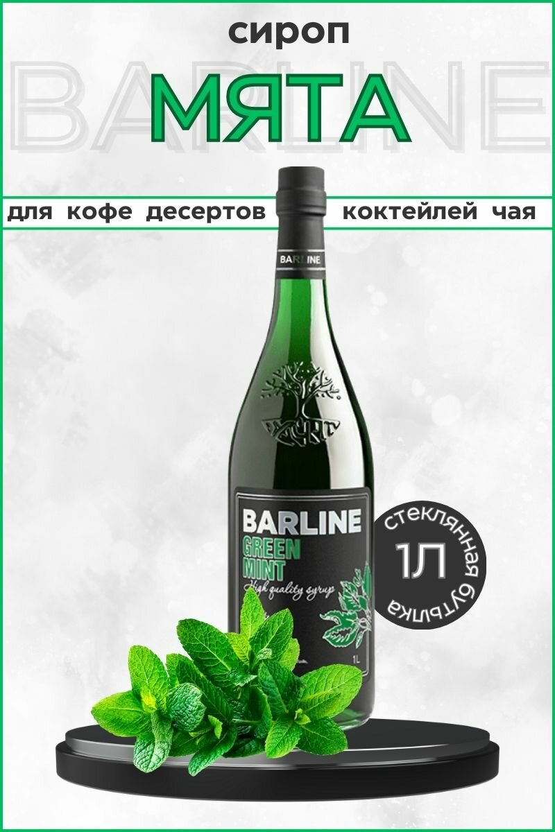 Сироп Barline Зелёная Мята (Green Mint), 1 л, для кофе, чая, коктейлей и десертов, ПЭТ