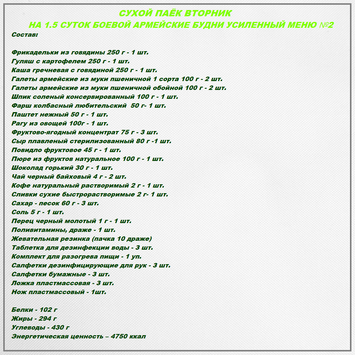Сухпаек армейский вторник суточный до 06.2026 интересное: