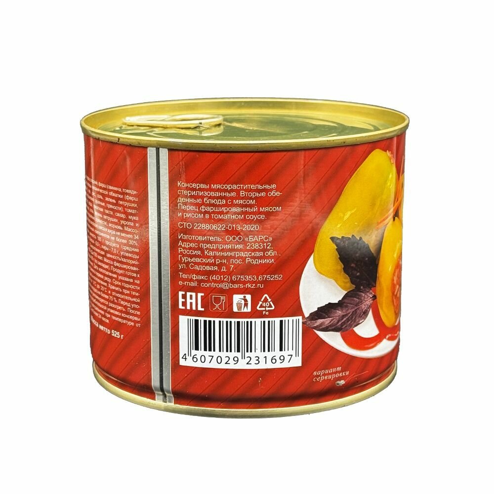 Перец фаршированный мясом и рисом в т/с Барс 525 г 12 шт
