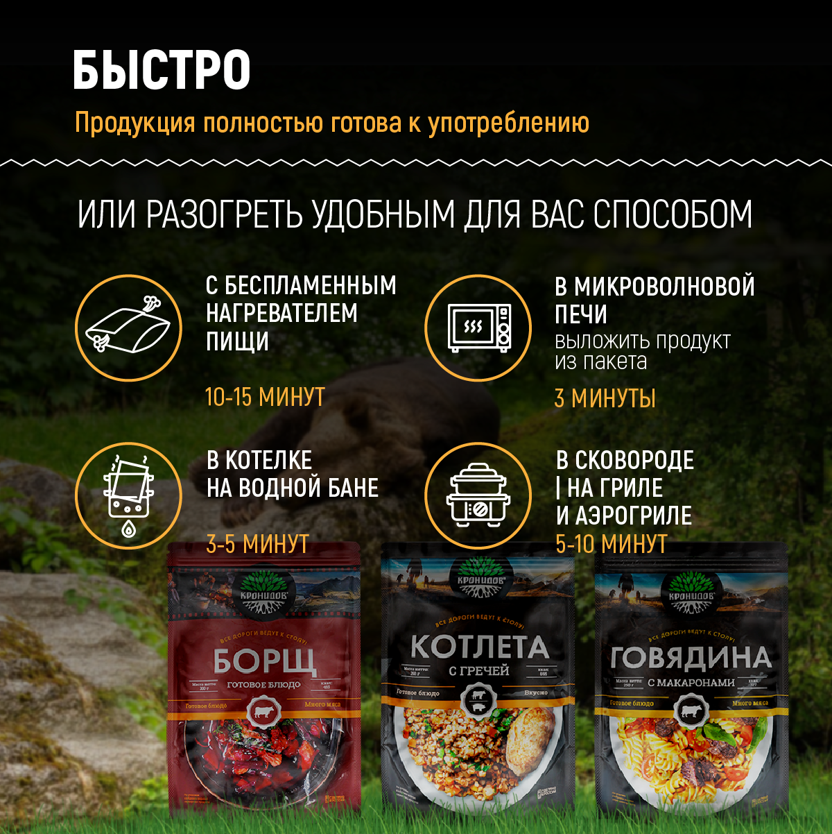Готовое блюдо в реторт-пакете "Говядина с макаронами" Кронидов Сухой паек для охоты, рыбалки, в поход Набор 4 шт. по 250 гр