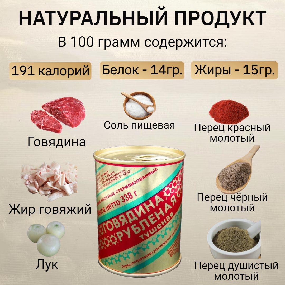 СохранитьТушенка Говядина рубленая белорусская. Березовский мясоконсервный комбинат, 338гр 6 шт интересное: