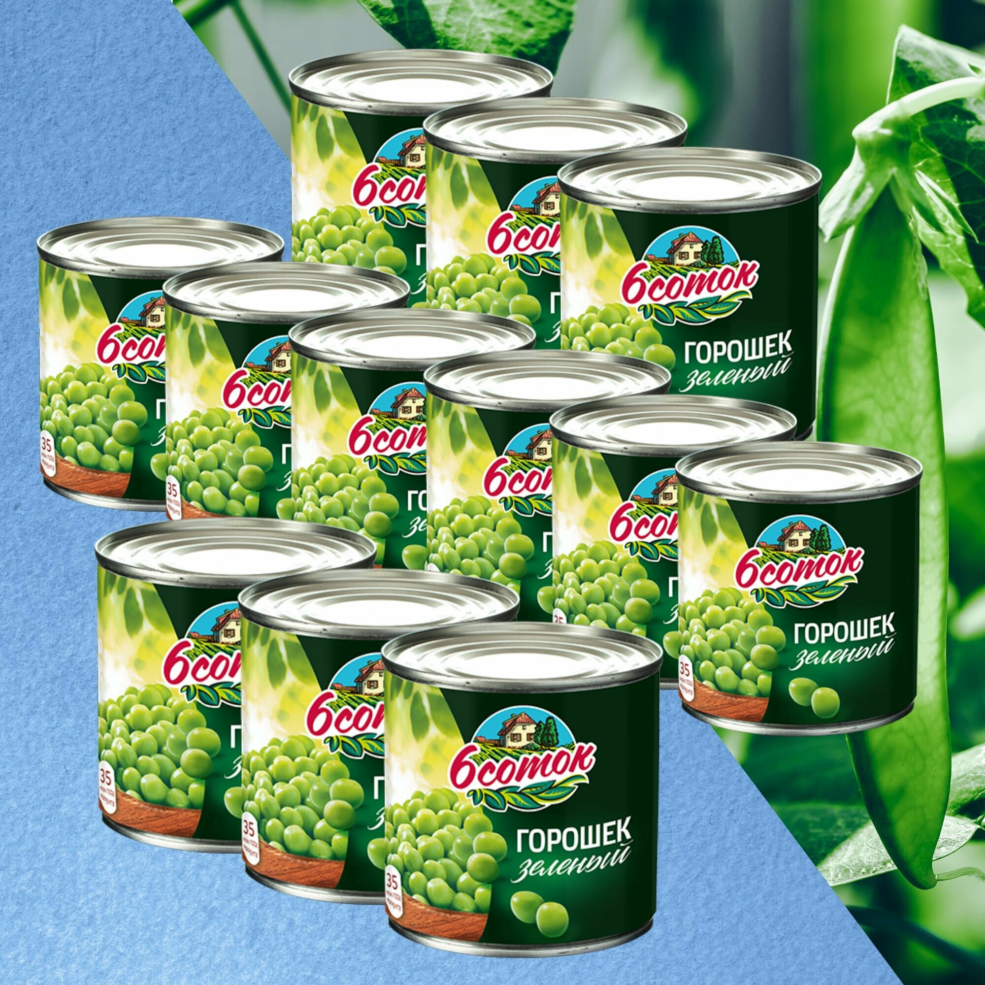 Горошек зелёный консервированный "6 Соток", 12 штук по 425 мл. интересное: