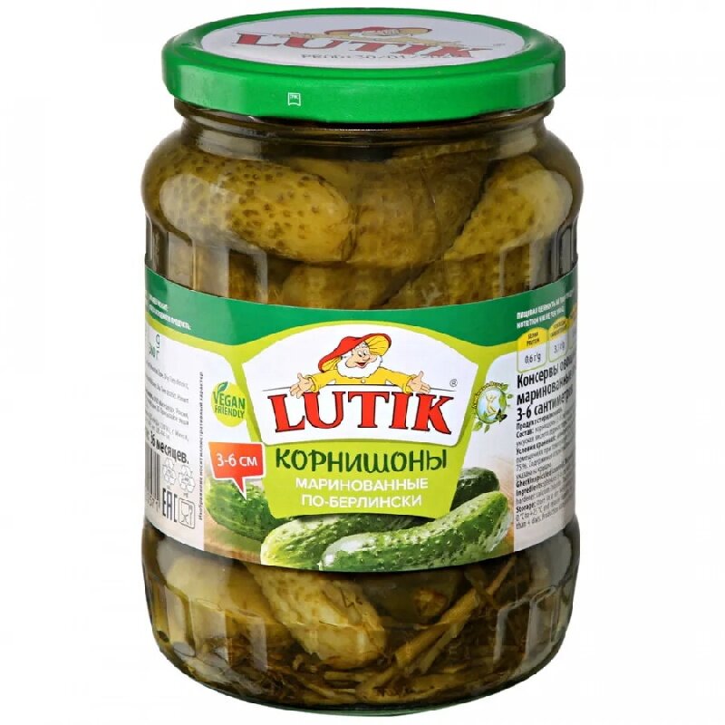 Огурцы Lutik Корнишоны маринованные по-берлински 3-6, 720 мл