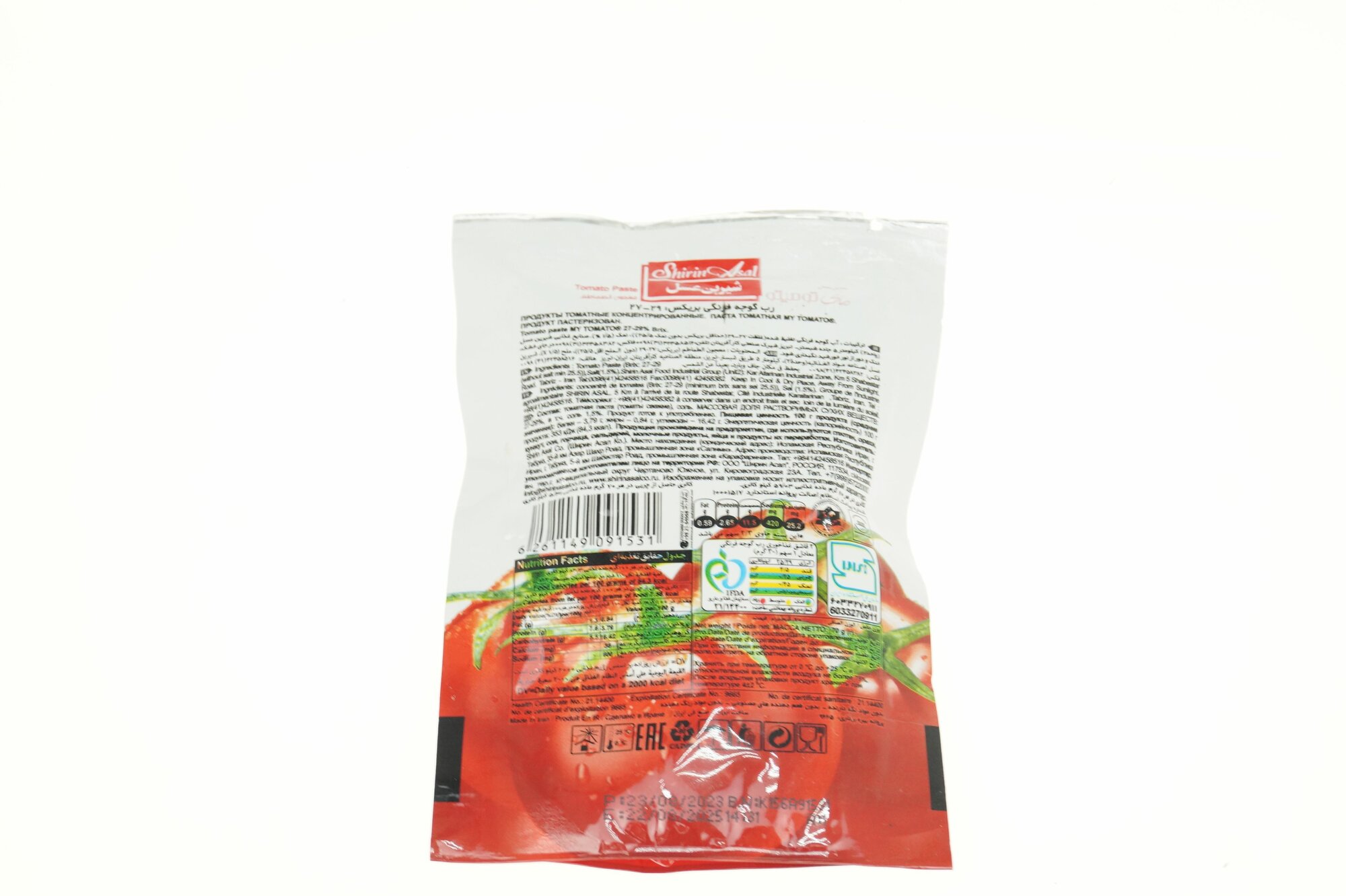 | Состав | Томатная паста (томаты свежие), соль. Массовая доля растворимых сухих веществ: %, в т.ч. соль 1,5% Массовая доля растворимых сухих веществ: 27-29%, в т.ч. соль 1,5%. |
