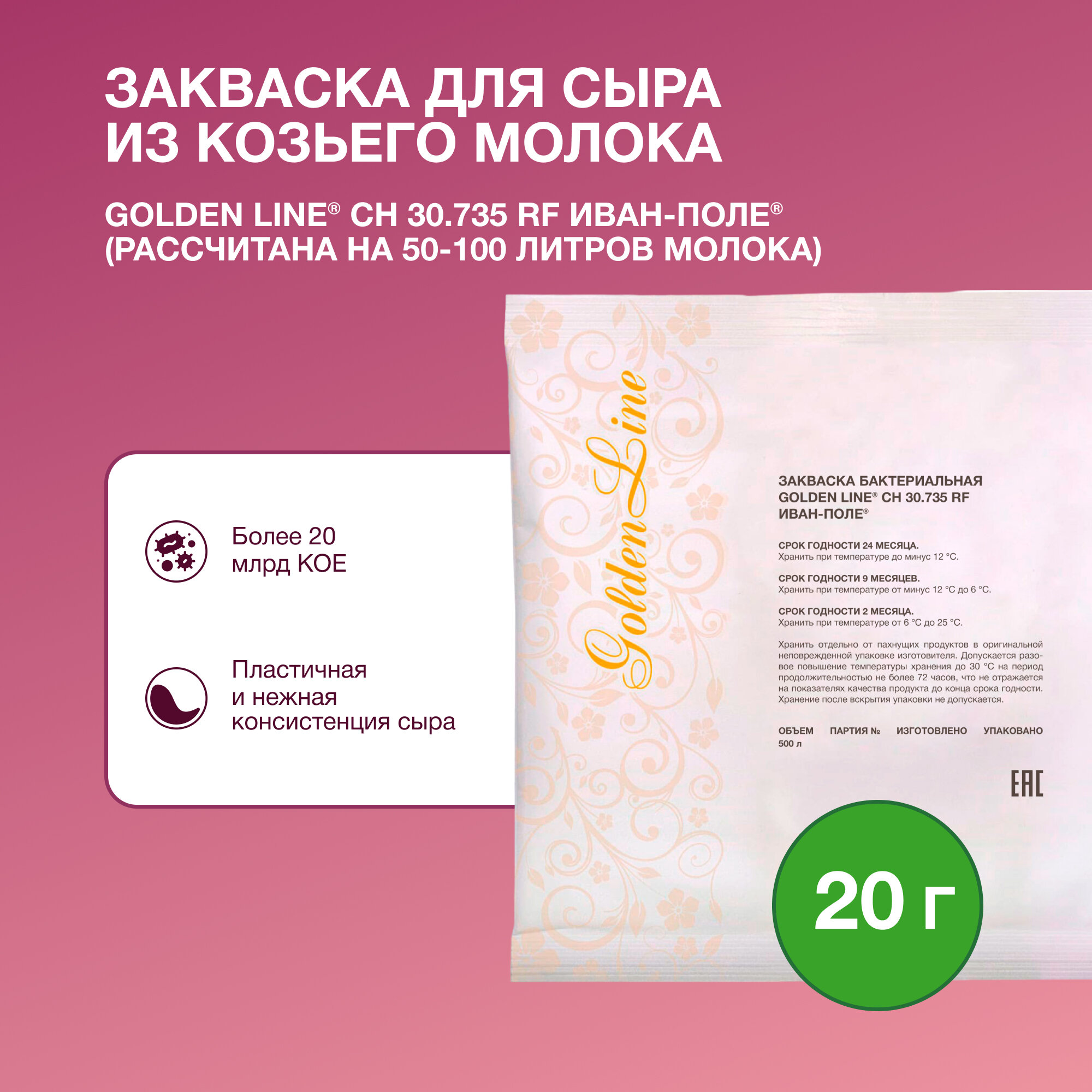 Купить Закваска для Козьего сыра Golden Line, 20 г на 50 - 100 л молока, Иван-поле